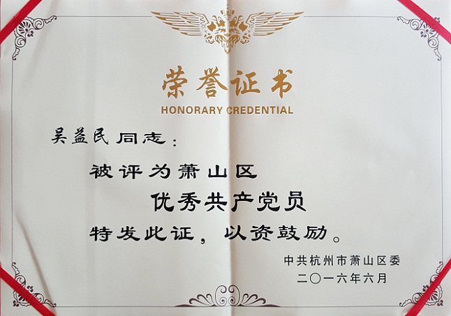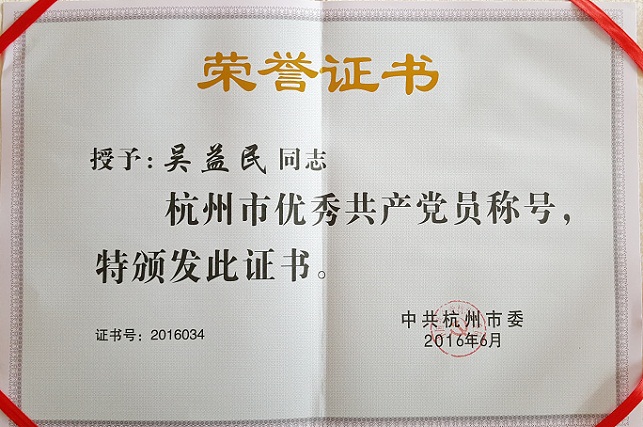 在庆祝中国共产党成立95周年之际,bw必威西汉姆联官网密封党的建设又传喜讯。我司常务副总经理兼总工程师吴益民同志获得了中共杭州市委、中共萧山区委两级“优秀共产党员”表彰。