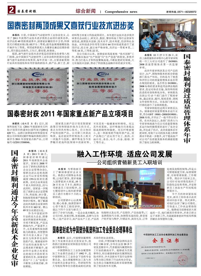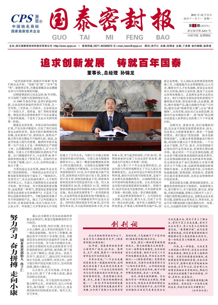 经过近一个月时间紧锣密鼓的筹备,公司企业报《bw必威西汉姆联官网密封报》创刊号于2011年12月6日正式出版发行。